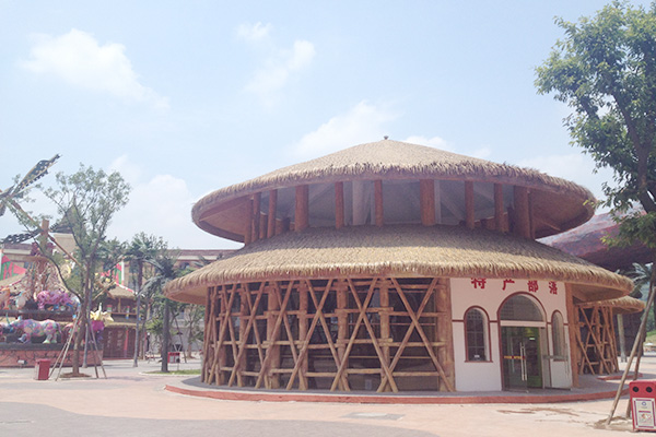 (1)文化性:茅草是表達中國古典文化風格的經典材料。它色澤美觀高雅,給人以自然、生態的感覺,每片茅草都凝聚著古代文明與現代科技完美結合的新的文化理念。